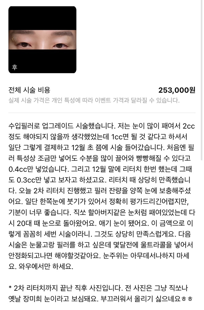 | 156 | 필러, 보톡스 | 옆볼필러 맞고 쓰는 후기에요 | 아둥바바둥 | 2023-09-07 | 6,764 |